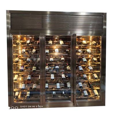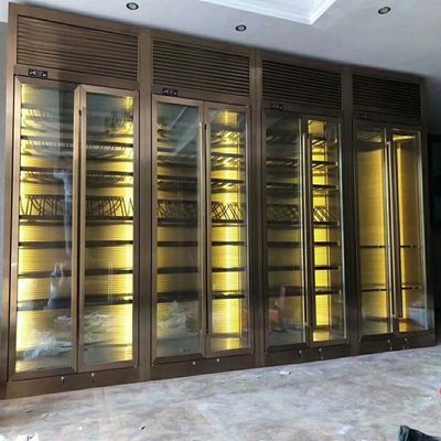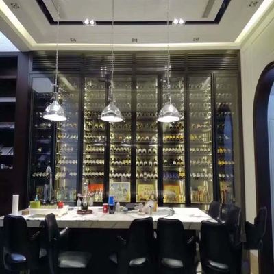 Decoración de hoteles Cuadro de metal negro Muebles de cristal Display de acero inoxidable gabinete de vino