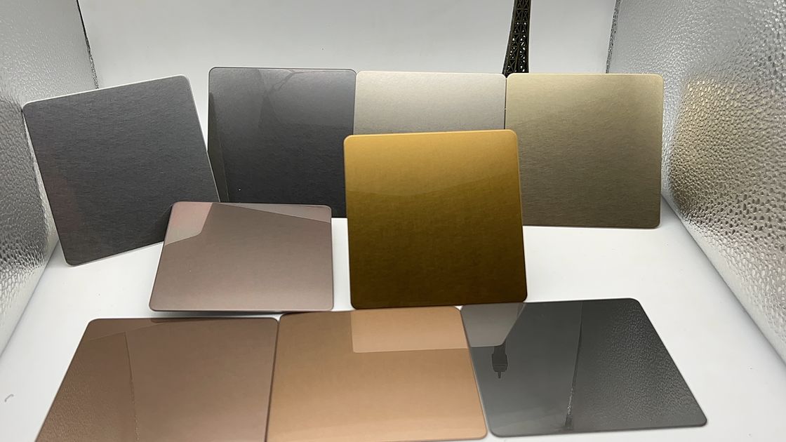 La hoja de acero inoxidable de color PVD está disponible en una amplia gama de colores.Se utilizan variaciones de proceso y aleación para obtener una amplia gama de colores.