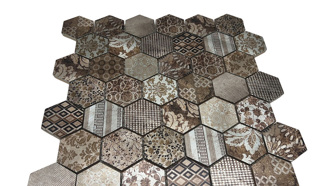 Arte moderno de lujo 300*300mm Mosaico de metal hexagonal de inyección de tinta