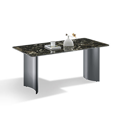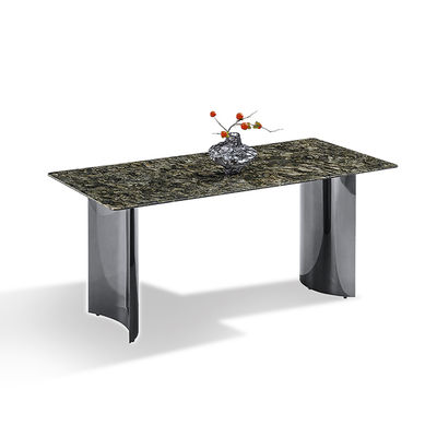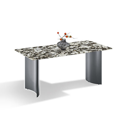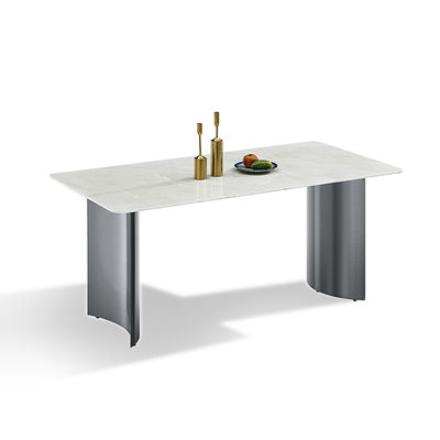 Mesa de piedra sinterizada moderna con patas de mesa dobles redondas de acero inoxidable con arco