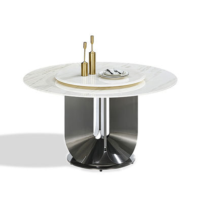 Mesa de comedor de lujo de acero inoxidable con tapa de piedra artificial giratoria