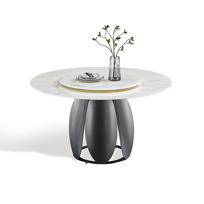 Mesa de comedor de acero inoxidable de lujo con tapa giratoria de piedra artificial