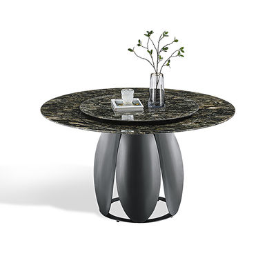 Mesa de comedor moderna redonda de acero inoxidable color negro con piedra sinterizada