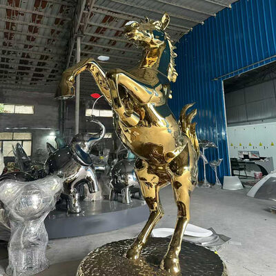 OEM/ODM Service Titanium Gold Mirror Surface Horse Figurine  201 304 Grade Metal  Animal Art Ornament for Garden Outdoor Decor 1